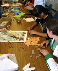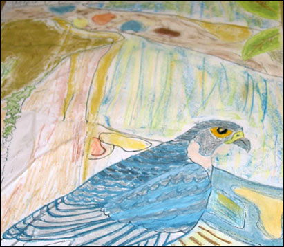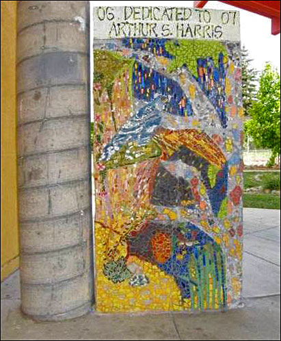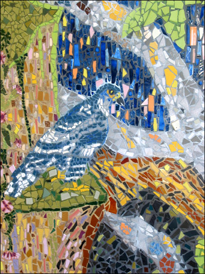 Middlebrook Gardens and Yellow Cottage Mosaics are shown working with Blach School's 7th and 8th graders to create a mosaic mural. This is intended as a learning mural combining lessons about nature, the school mascot, the Falcon, with art. The mural will be permanently mounted at Blach School for future generations to enjoy.