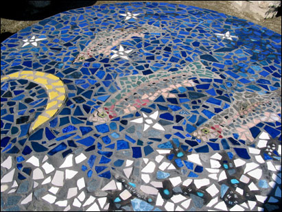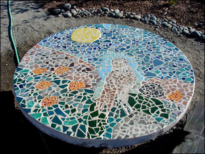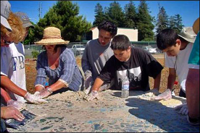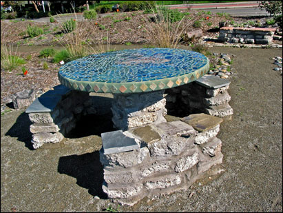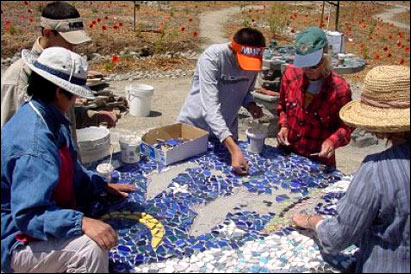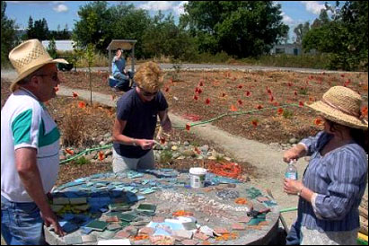 Christina Yaconelli (shown) working with Livermore residents, Eagle Scouts and the Mormon Church to cover the garden's concrete tables with mosaic artwork. This native-Californian landscaping project, started in 2003, was recently completed and dedicated to the community.