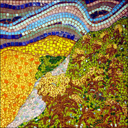 The Master Gardeners of Santa Clara in conjunction with Middlebrook Gardens and Mosaic artist Christina Yaconelli created three Community mosaics at the Guadalupe River Park and Gardens Event last year- depicting an Anna's Hummingbird, Acorn Woodpecker and California Landscape