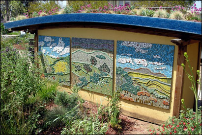 Mural Triptych for SF Garden Show • California chaparral • High-desert • Oak woodland Materials: Hardbody tiles & vitreous glass