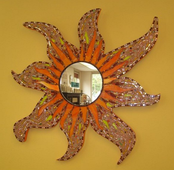 Vitreous glass with mirror center, stained glass and various ethnic beads