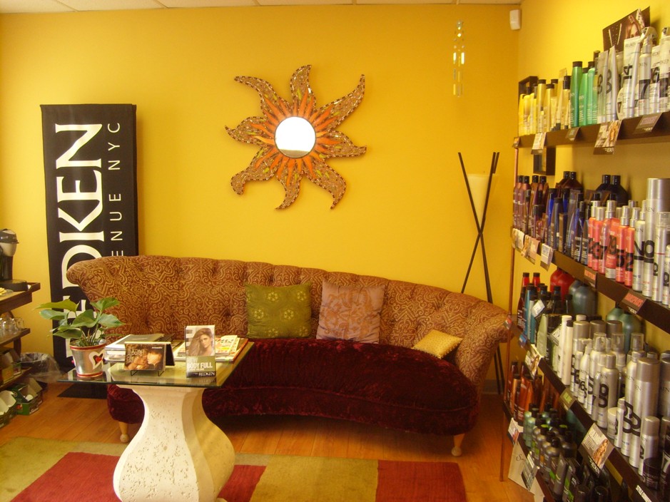 Moroccan tiles & mirrored glass mural with mirror located in Sanctuary Salon.