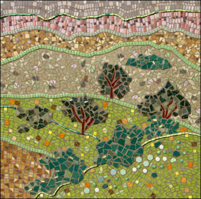 Mural Triptych for SF Garden Show • California chaparral • High-desert • Oak woodland Materials: Hardbody tiles & vitreous glass